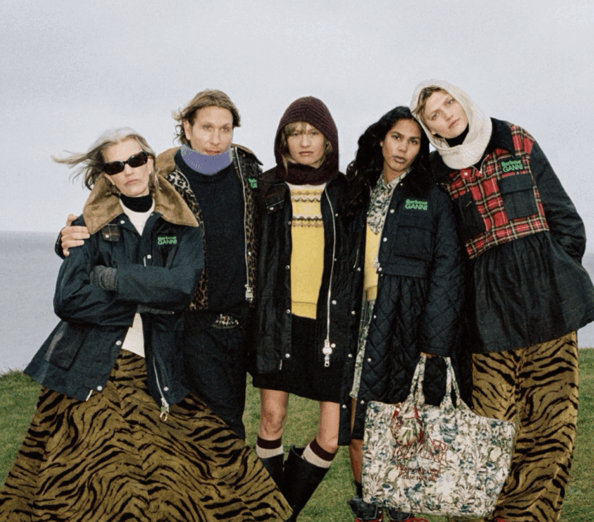 Barbour と Ganni は 四度目となる新章を発表し 英国の実用的なヘリテージと デンマークブランドならではのエネルギッシュな感性を融合させている。
