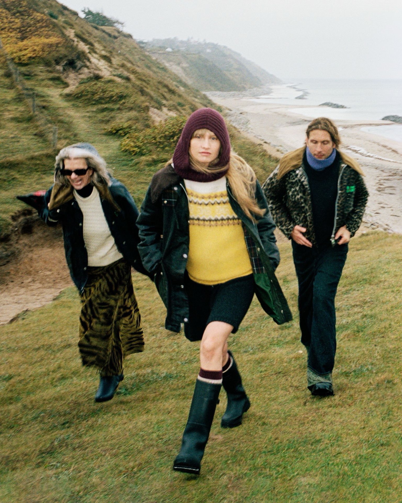 素材は Barbour が担い 姿勢とムードは Ganni がもたらすことで 雨の日さえスタイルとして楽しめる冬のワードローブが完成している。