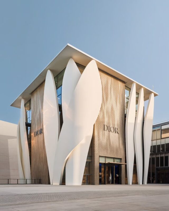 L’architecture du House of Dior fusionne harmonieusement les influences classiques et contemporaines, avec des matériaux somptueux comme le marbre, le verre et le métal, créant une ambiance à la fois majestueuse et chaleureuse.
