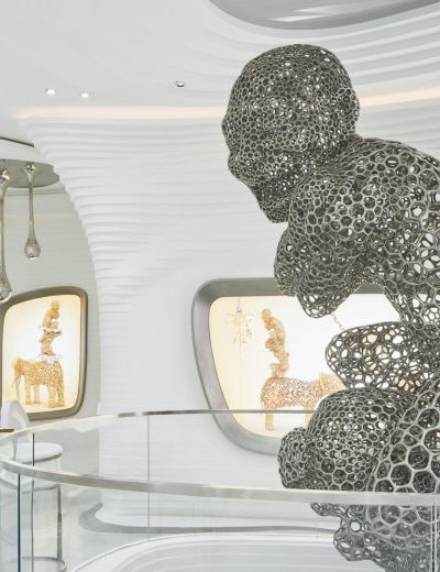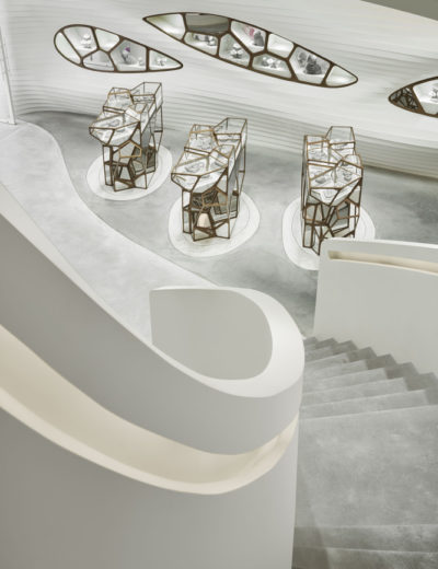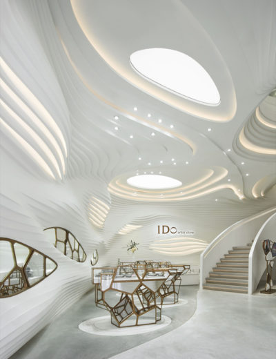 位于武汉的I Do艺术馆结合了空间和雕塑元素,创造了一个极具表现力的,沉浸式和启发性的体验。在这个场馆中,一个光滑流动,像洞穴一样的空间被雕刻在室内,将游览者笼罩在一个持续流动和引人入胜的环境中。嵌入墙内并在空间中自体支撑的细节,展示着大规模地质构造,从内部侵蚀性构造中涌现。这些几何图形呈现出气象万千但协同统一的形式。