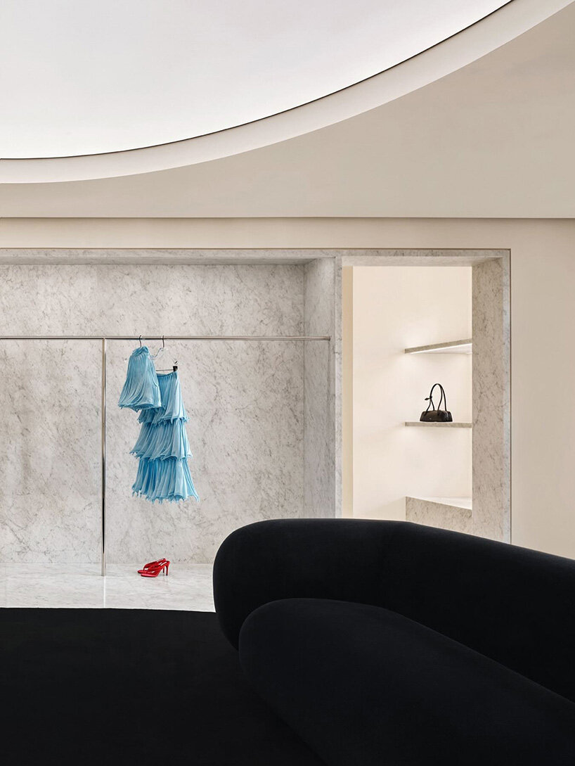 Ensemble ils ont traduit les principes fondateurs de la marque, à savoir sensualité, pureté radicale et formes sculpturales, en une architecture singulière qui joue sur la matérialité du marbre.